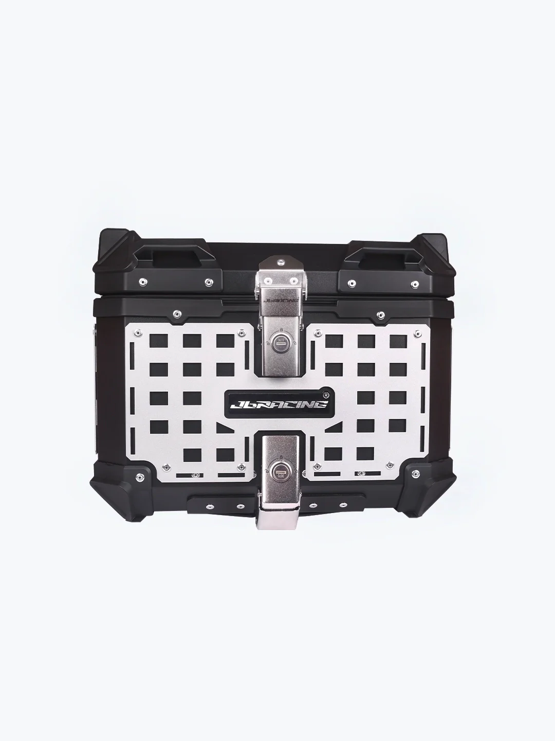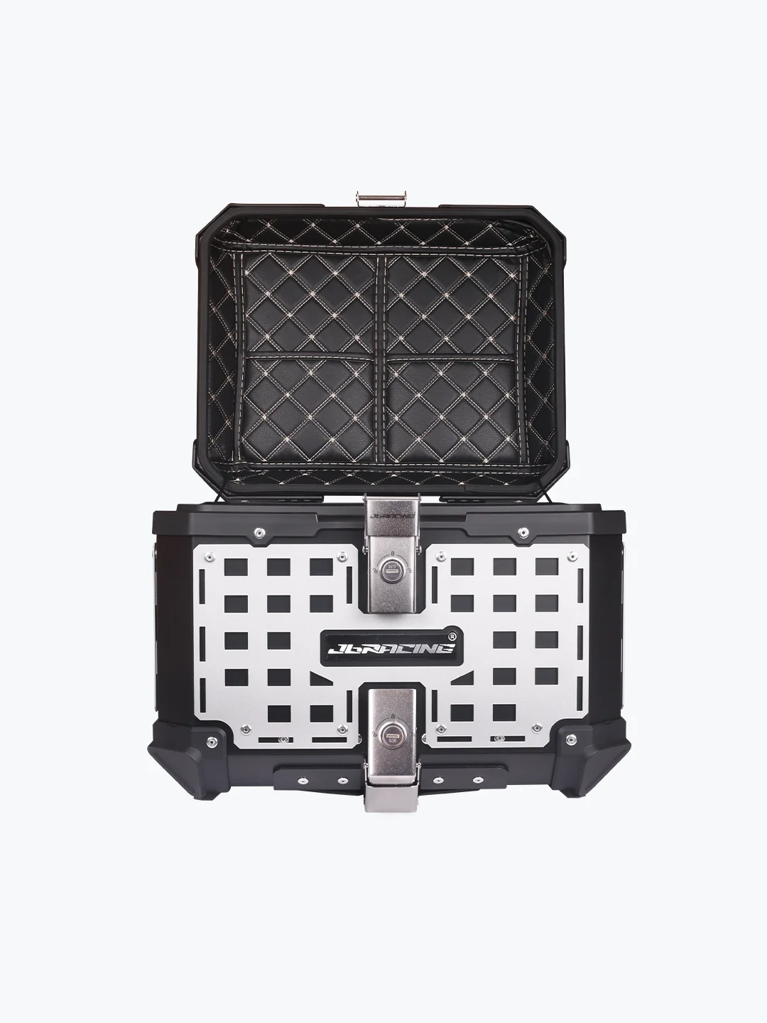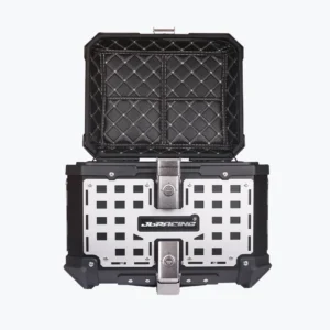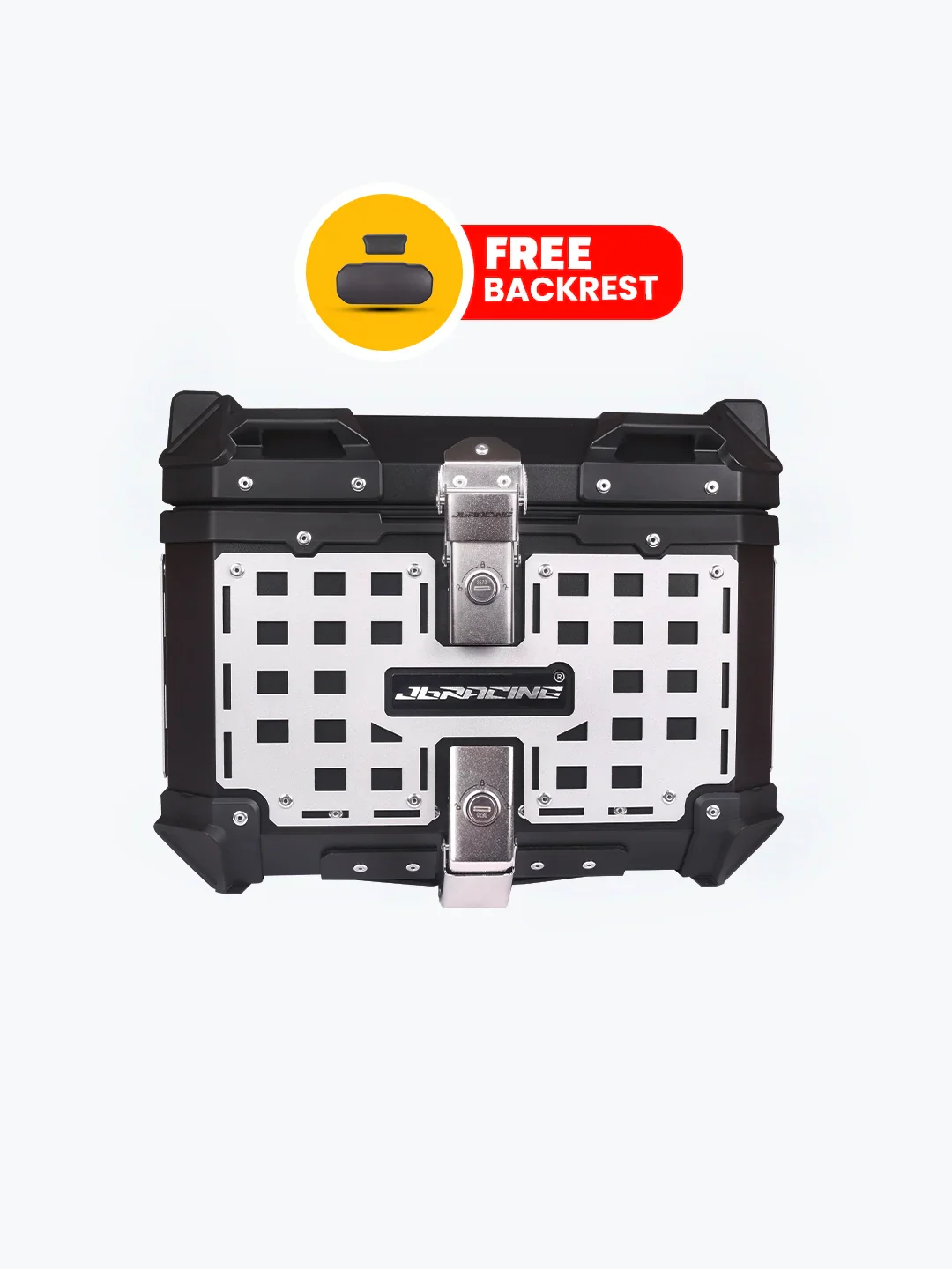Spacious 45L JB Racing Top Case with 3D mesh ventilation, waterproof build & back rest pad for comfort.