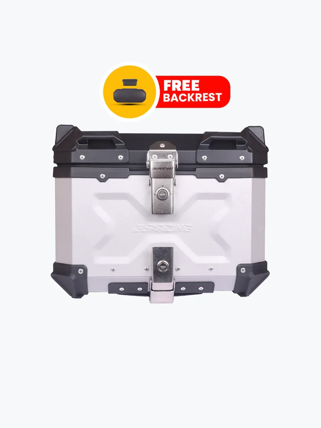 JB Racing Top Case 45L Silver Premium with Back Rest Pad – Maximum Storage & Riding Comfort