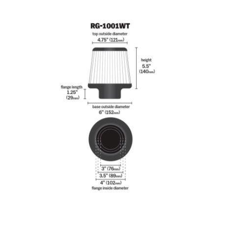 K&N RG-1001WT is a universal clamp-on air filter offering washable, high-flow performance and durability.
