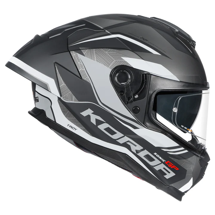 Korda Sonic GP Troy Helmet Grey full face helmet with dual visor and aerodynamic spoiler
