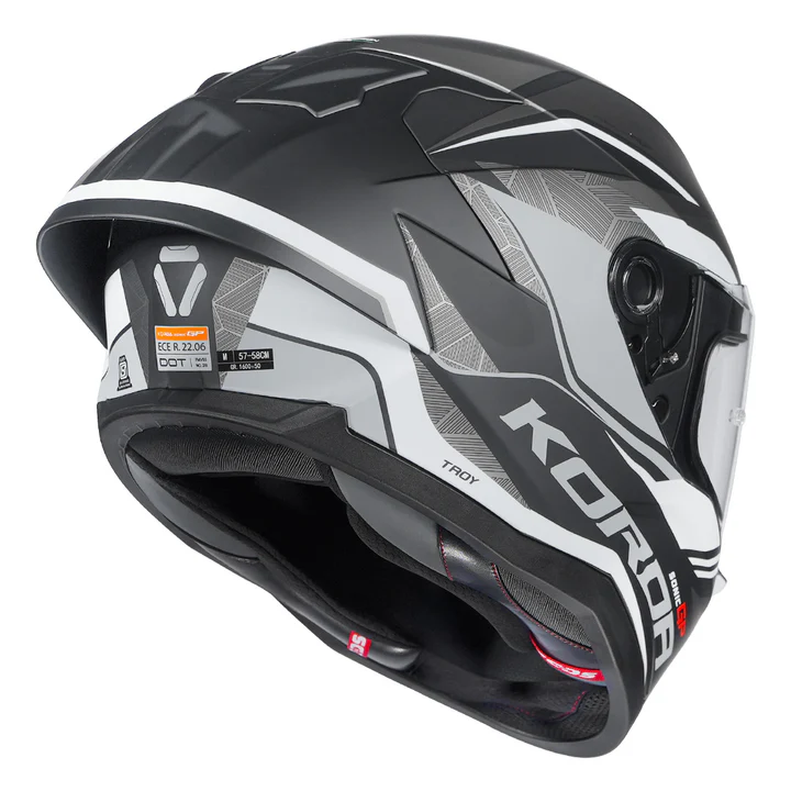 Korda Sonic GP Troy Helmet Grey offers ECE 22.06 safety, dual visor, lightweight build, and all-day riding comfort.