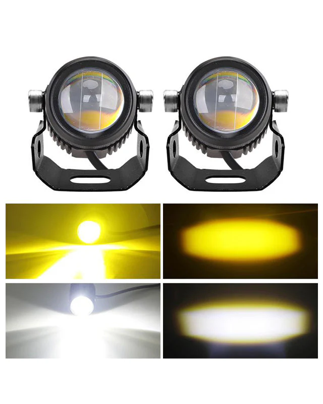 LED Fog Light Work Lamp with Hi/Low, Cars and Motorcycles (White & Yellow) 2Pcs