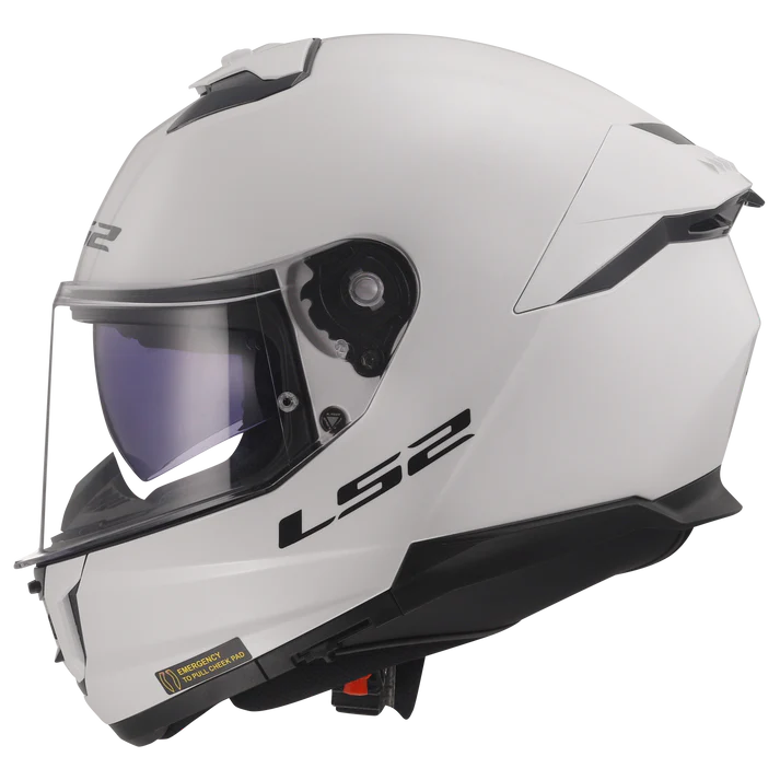 LS2 FF320 Stream II Gloss White helmet offers ECE 22.06 safety, wide vision visor, and all-day riding comfort.