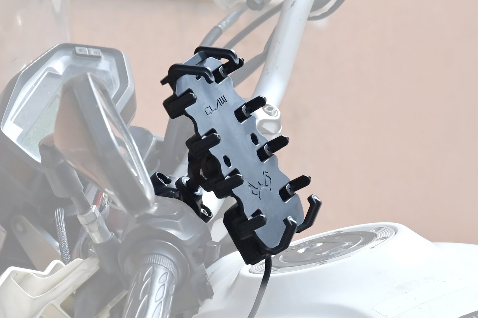 The Maddog Claw is a robust mobile mount designed specifically for bikers. It features an 18W adaptive fast charger, IP67-certified waterproofing, a secure 8-point holder, and long-lasting build materials including stainless steel and high-grade polymers. Its wide voltage and current adaptability, along with a tested lifecycle, make it the perfect companion for long and rugged rides.