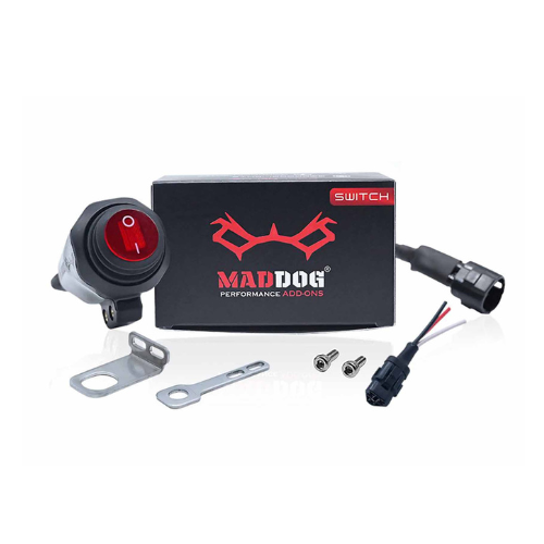 Maddog Switch: Plug-and-play dual mounting switch for motorcycle accessories with backlight & ABS build.