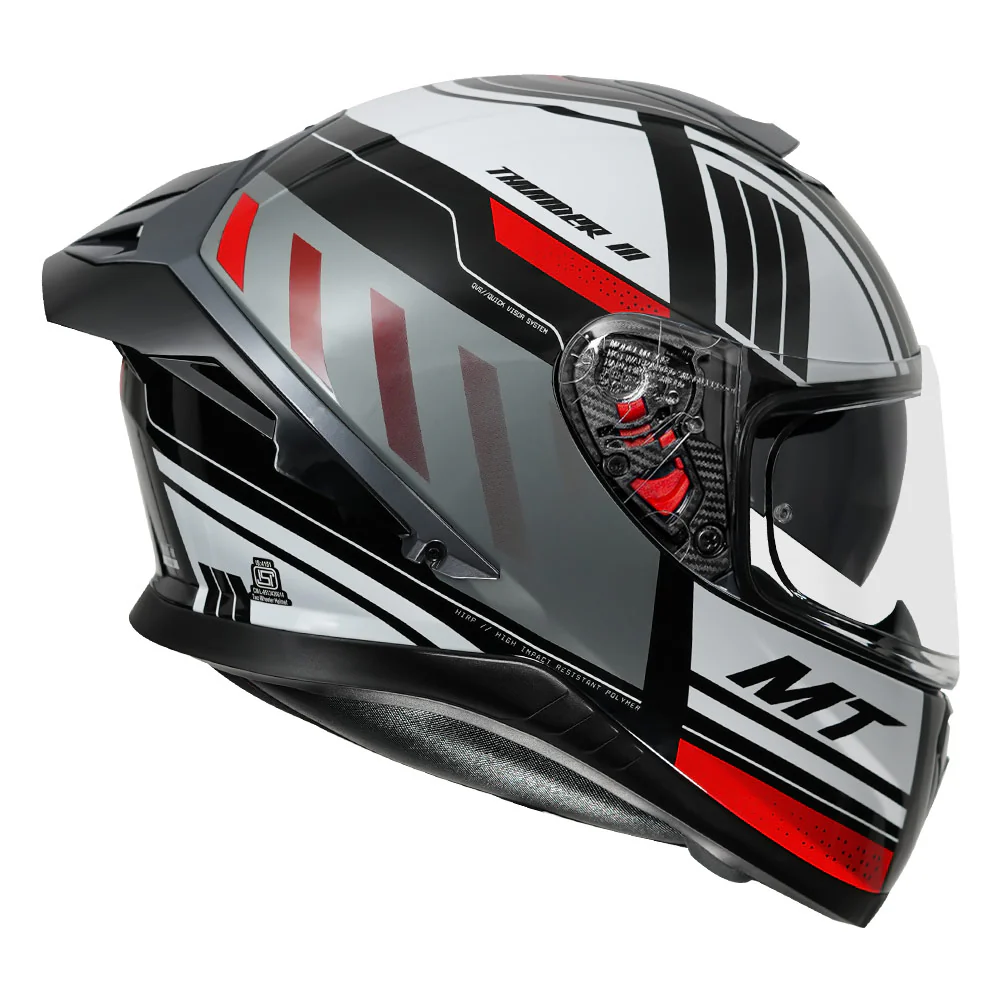 MT Thunder 3 PRO has been designed to be among the most aerodynamically efficient and safe helmets on the market. The genuine ECE R22.05 certification is trusted in over 130 countries where this helmet is sold. In addition, the UK Government has rated the helmet 4-Stars in their SHARP rating system, which is a testament to this helmet’s high level of quality and protection.