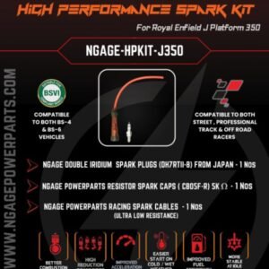 Designed for riders who want unmatched ignition reliability, smoother engine performance, and improved fuel efficiency, the NGage Spark Kit for Royal Enfield Himalayan 410 combines NGK Iridium IX Spark Plugs, NGK Resistor Spark Caps, and NGK Racing Spark Cables into a complete upgrade package trusted by racers and touring enthusiasts worldwide.