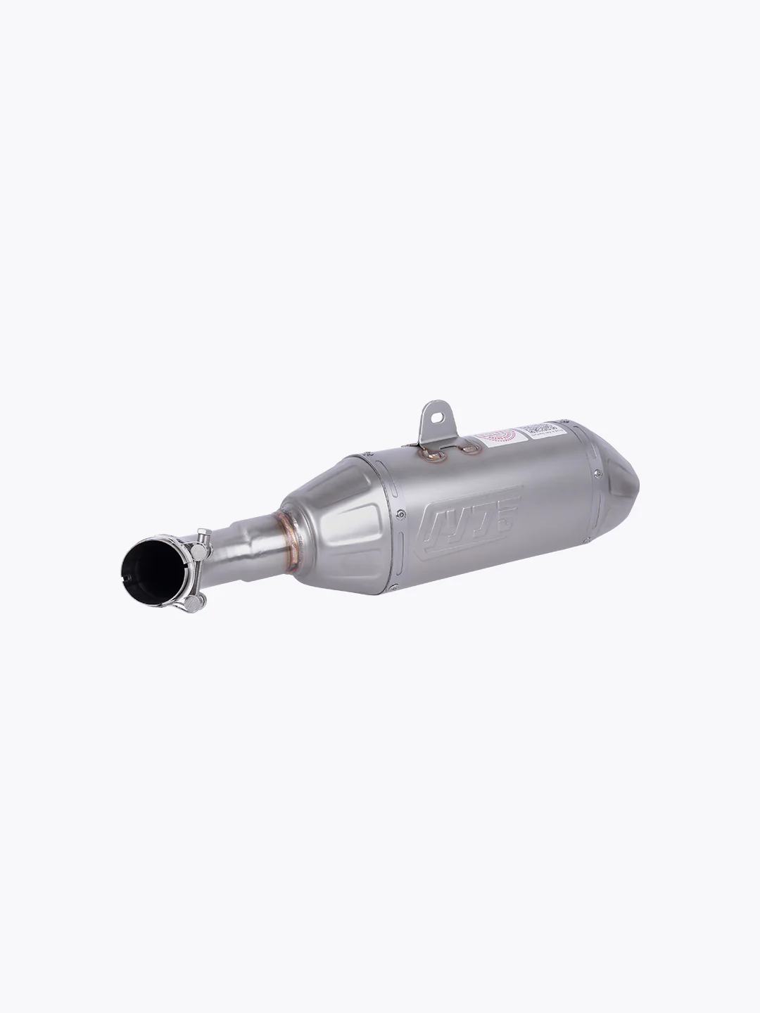 Premium stainless steel slip-on exhaust for KTM 390 Adventure offering improved throttle response, reduced weight, and aggressive exhaust sound.