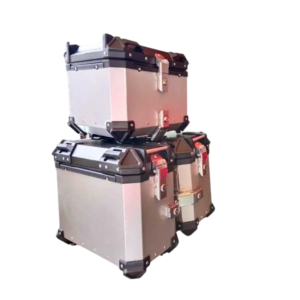 119L adventure panniers & top box set with universal fitment, rugged aluminum build & all mounting fittings.