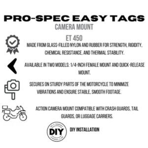 Designed for adventure riders and tourers, the Pro-Spec Easy Tags Aux Mount with Base Mount offers a simple, bolt-on system for safely installing auxiliary lights on motorcycle crash guards. Built from high-strength glass-filled fiber reinforced with Delrin, this setup delivers unmatched durability and stability for long rides.