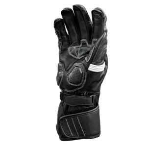Race-inspired full-gauntlet gloves with carbon fiber armor, Knox® palm sliders, and premium leather comfort.