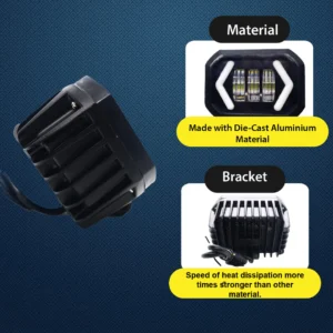 Universal Headlight Black Shell LED Fog Light Auto bicycle Spot Lamp For Bicycle, Motorbike Description: · 100% Brand New and easy installed · Arrow DRL White, Red Arrow DRL Flashing & white fog light. · Great Package with installation tools · Waterproof, dust-proof, rust-proof, you can use this headlight even in rainy days · 2 ways of light: White & Red Light · Light Power: 60w · Flux: 6000LMX · Environment Temperature: -40~85 cent degree· Range: 400m · Material: Aluminum Alloy · LED Bulb: 6000LMX U.S. Imported LED · Weight: 1200g. 5-30000 hours life, at least 15 times in the xenon lamp.