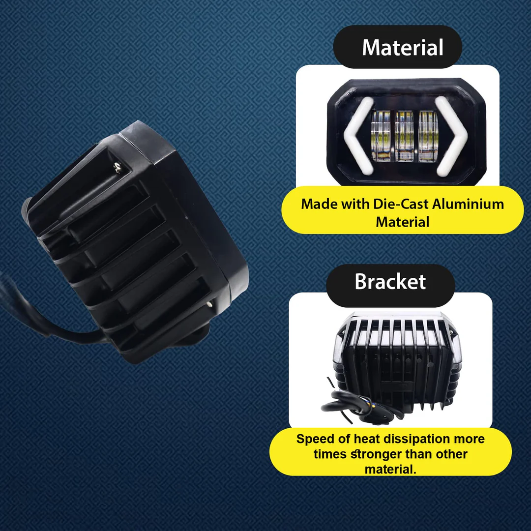 Yellow/White 30W Dual Lens Mini Fog Light (12V DC, Pack of 1 Pcs, Universal for Bikes & Cars) (Copy)