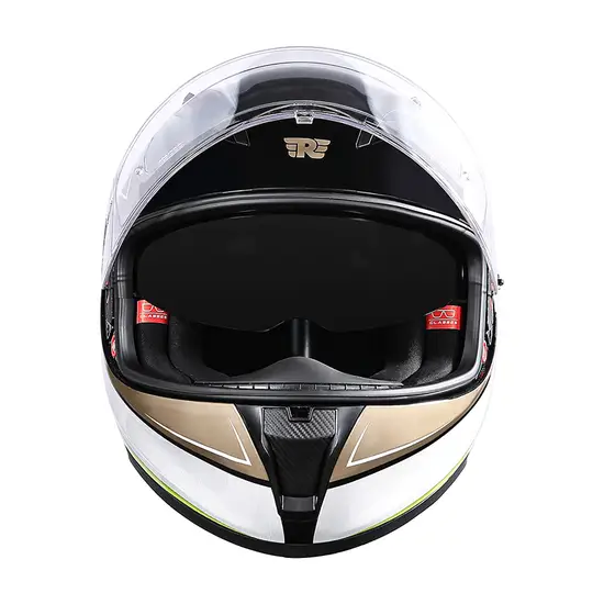 The Royal Enfield SpeedX Full Face Helmet is an ISI and DOT certified helmet featuring a high-impact thermoplastic shell. Designed for daily commuting and long rides, it offers dependable protection, comfortable fit, and a bold gold finish for riders who value safety and style.