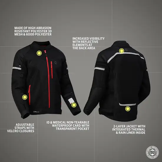 A touring-ready riding jacket with CE protection, wind resistance, and a removable thermal liner for all-weather comfort.