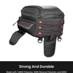 A compact, durable 10L tank bag with magnetic/strap mounts, weatherproof cover, and smart storage for daily rides.