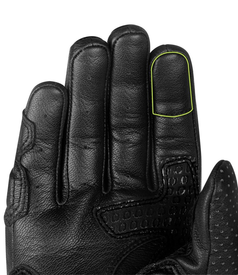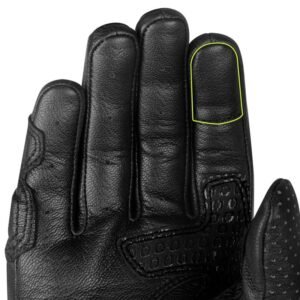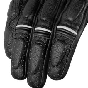 | PROTECTION | Scaphoid Bone: KNOX® patented Impact SPS (Scaphoid Protection System) is made from a layer of Knox’s latest impact absorbent Micro-lock protector on the inside and two specially developed abrasion resistant LDPE sliders on the outside. This combination enables the gloves to slide smoothly on contact with the ground, instead of gripping the impact surface and subsequently reducing hyper-extension of the wrist and potential scaphoid injuries. Wrist: True carbon fiber slider in reinforced in a TPR housing for optimum slide protection Knuckle: Overhanging PVC knuckle protector with HD foam backing. Overhang construction flexes with your hand and maximises actuation Finger Joints: HD foam inserts |