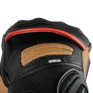 | PROTECTION | Scaphoid Bone: KNOX® patented Impact SPS (Scaphoid Protection System) is made from a layer of Knox’s latest impact absorbent Micro-lock protector on the inside and two specially developed abrasion resistant LDPE sliders on the outside. This combination enables the gloves to slide smoothly on contact with the ground, instead of gripping the impact surface and subsequently reducing hyper-extension of the wrist and potential scaphoid injuries. Wrist: True carbon fiber slider in reinforced in a TPR housing for optimum slide protection Knuckle: Overhanging PVC knuckle protector with HD foam backing. Overhang construction flexes with your hand and maximises actuation Finger Joints: HD foam inserts |
