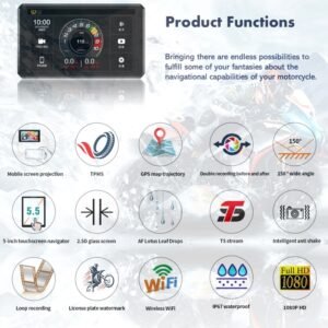 Fahren –Motorcycle GPS CarPlay Android Auto Screen with Dash Cam and Tyre Pressure Monitoring F1 Pro