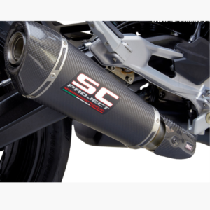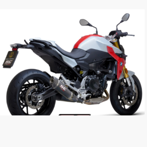 SC Project Conic Exhaust for BMW F900R/XR offers lightweight design, deep sound, and Total Black carbon style.