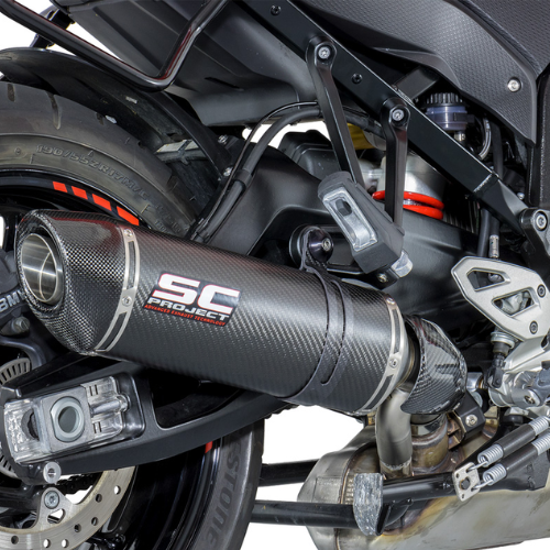 SC PROJECT EXHAUST FOR BMW S 1000 XR (2017 – 2019) Oval Carbon Fiber Muffler, low position, with Carbon fiber end cap
