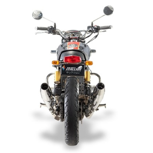 Silver Stallion exhaust for Royal Enfield Interceptor/GT 650 – lightweight, powerful, durable, and stylish.
