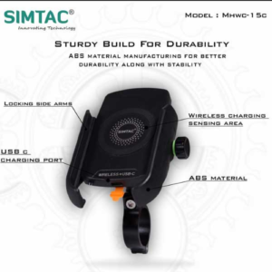 The SIMTAC MHWC-15C offers 15W wireless charging, USB-C support, 360° rotation & water resistance for bikes & scooters.