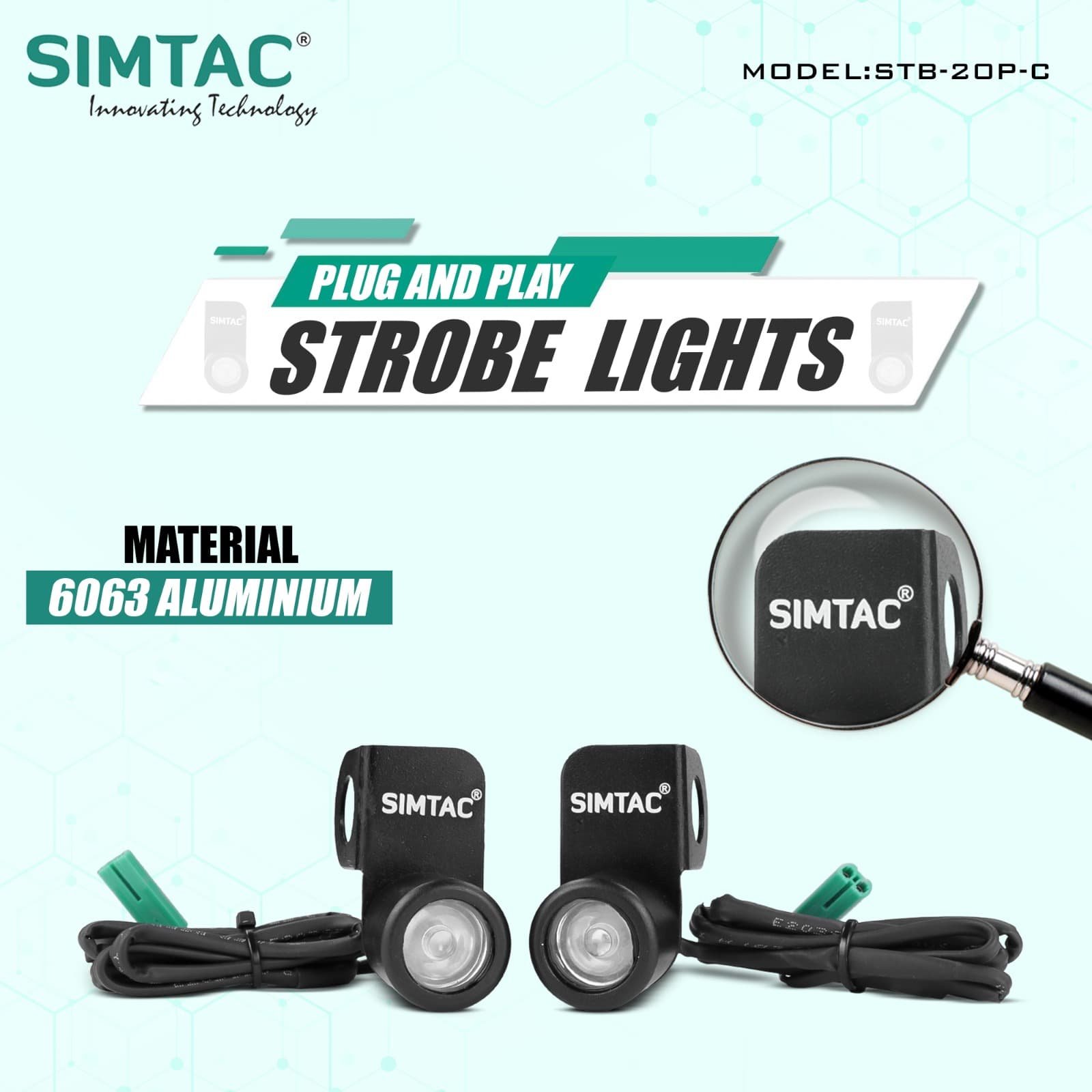 SIMTAC STB Strobe Lights – Waterproof, aluminium build, 20 flash modes & 1 km visibility for ultimate safety & style.
