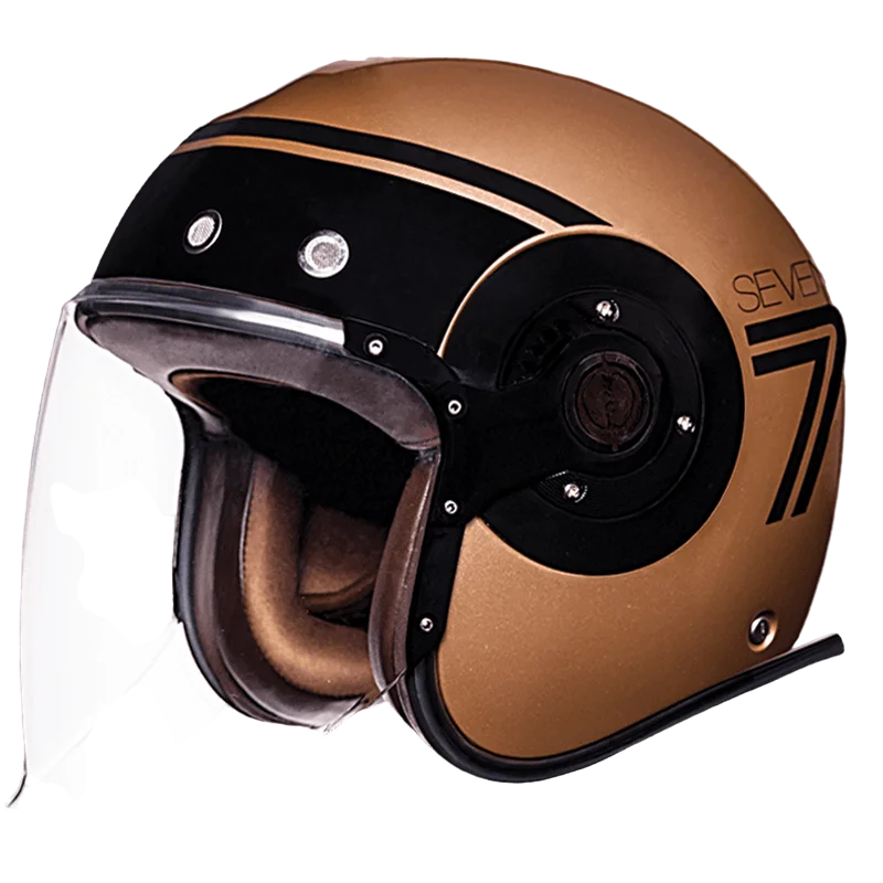 SMK Retro Jet Seven GL-720 – Retro open-face helmet with leather comfort, wide visor & customizable design.