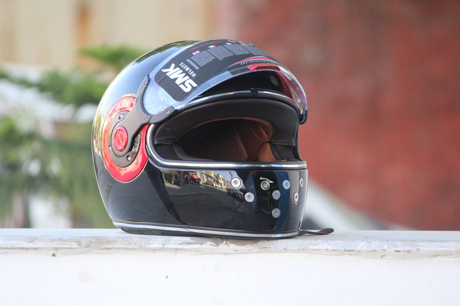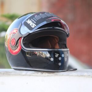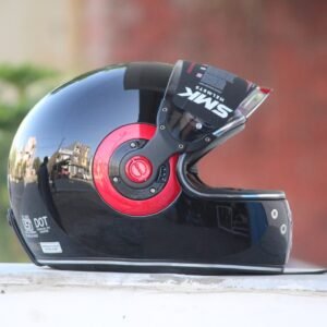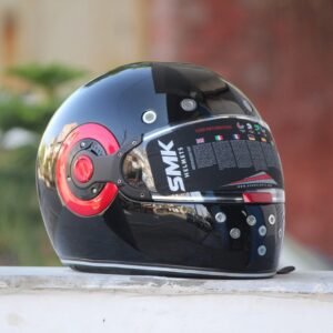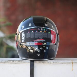The SMK Retro Solid Glossy Black with Red Ring Full Face Helmet combines classic retro styling with modern safety features, premium comfort, and reliable all-day protection.