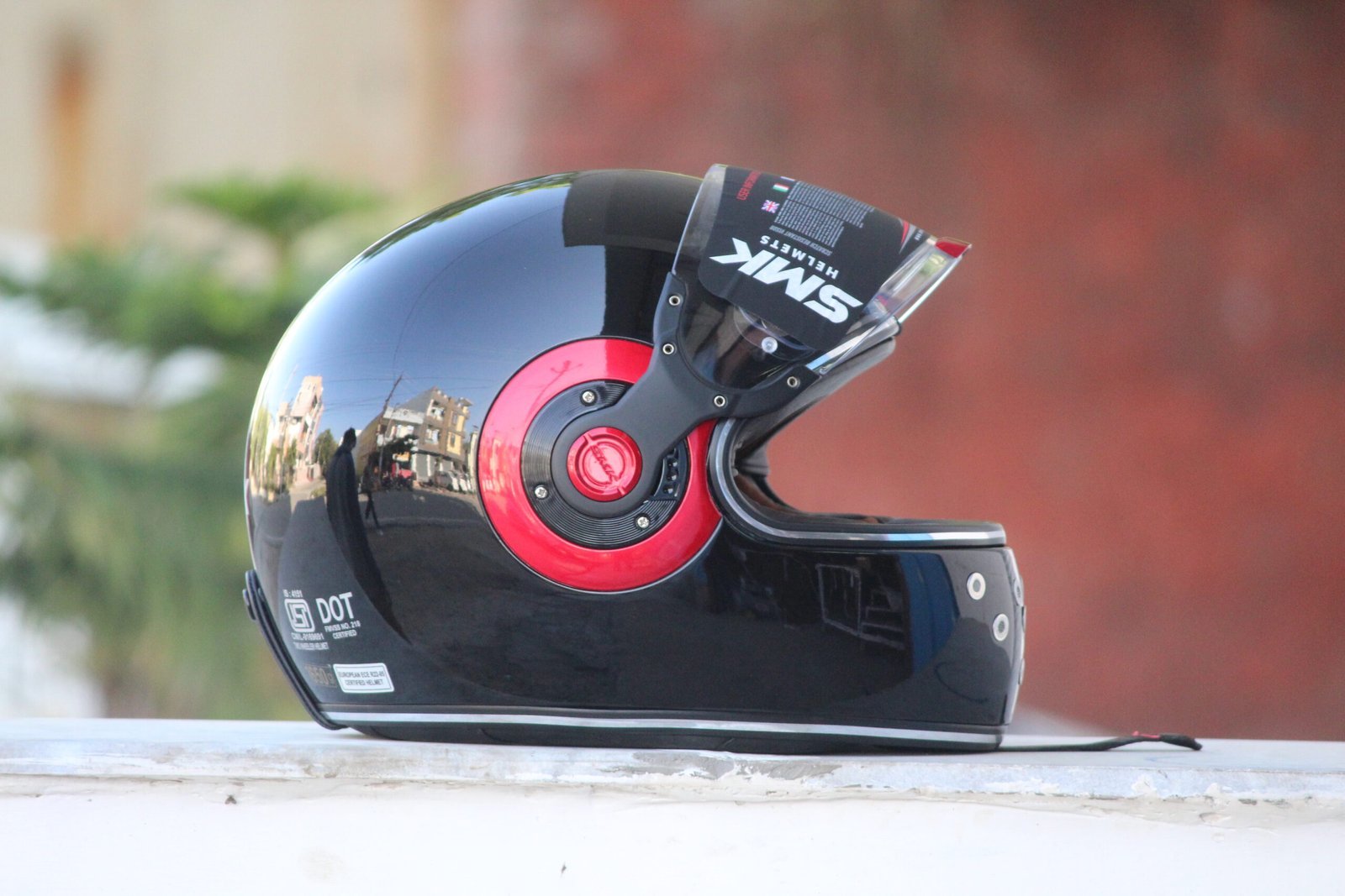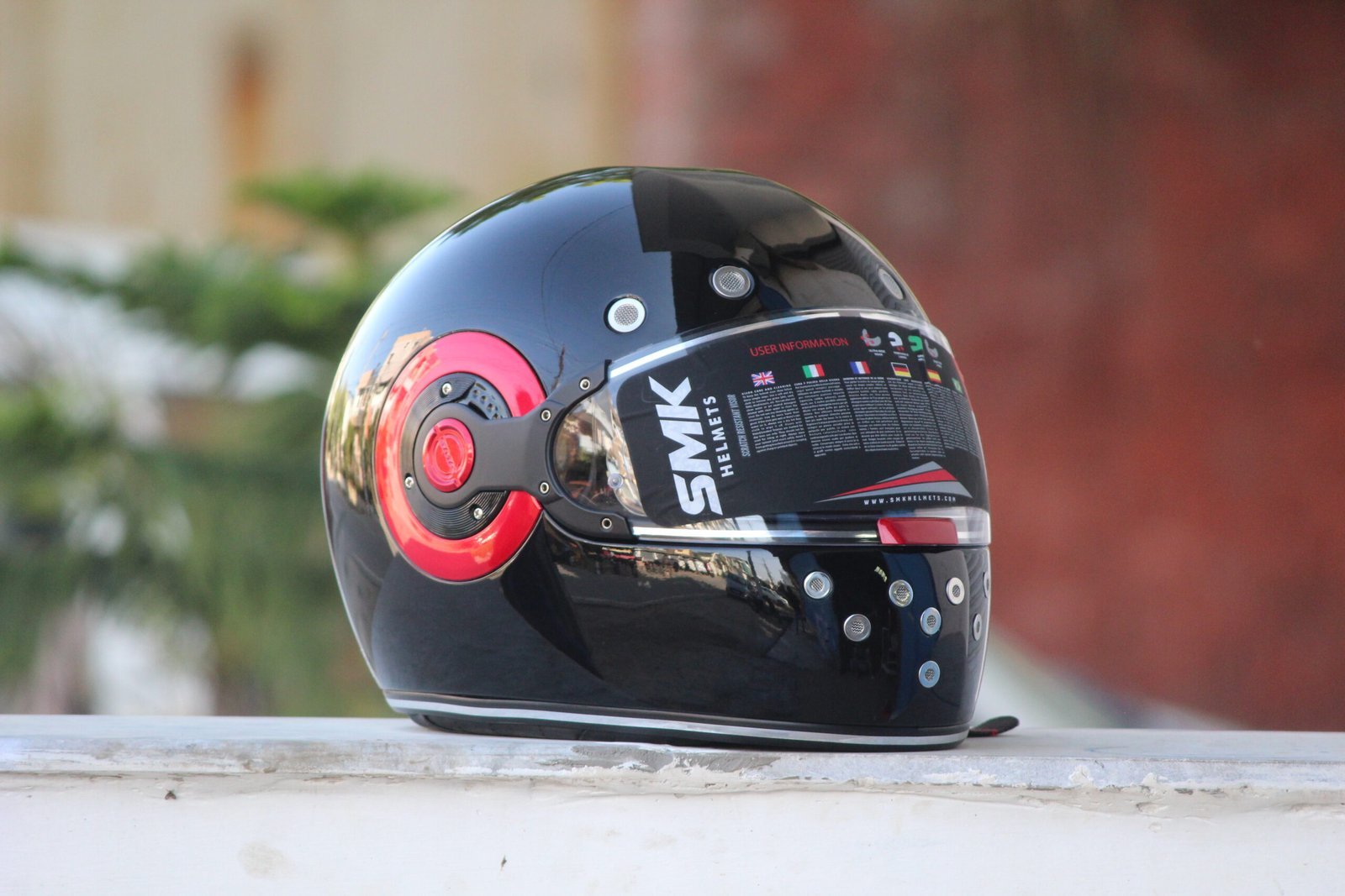 SMK Retro Solid Glossy Black with Red Ring – Timeless Style & Modern Protection