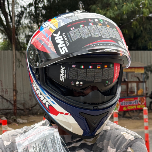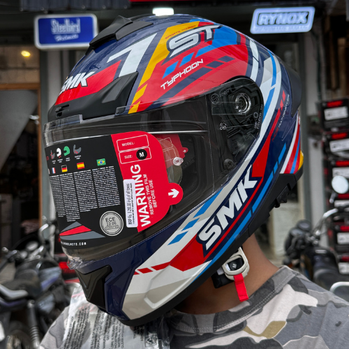 SMK Typhoon Sports Tourer Helmet – ECE & ISI certified, lightweight, ventilated, with sun visor.
