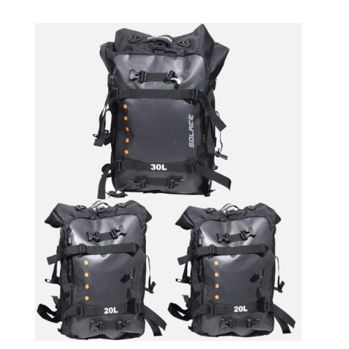 Whether it’s a quick day trip or a long-distance tour, the Solace Overlander Combo adapts to your journey with modular flexibility. With capacity options ranging from 20L to 70L, this hybrid system functions seamlessly as a tail bag, saddle bag, or even a backpack. Built with high-grade materials and 100% waterproof protection, it’s the perfect companion for every rider.