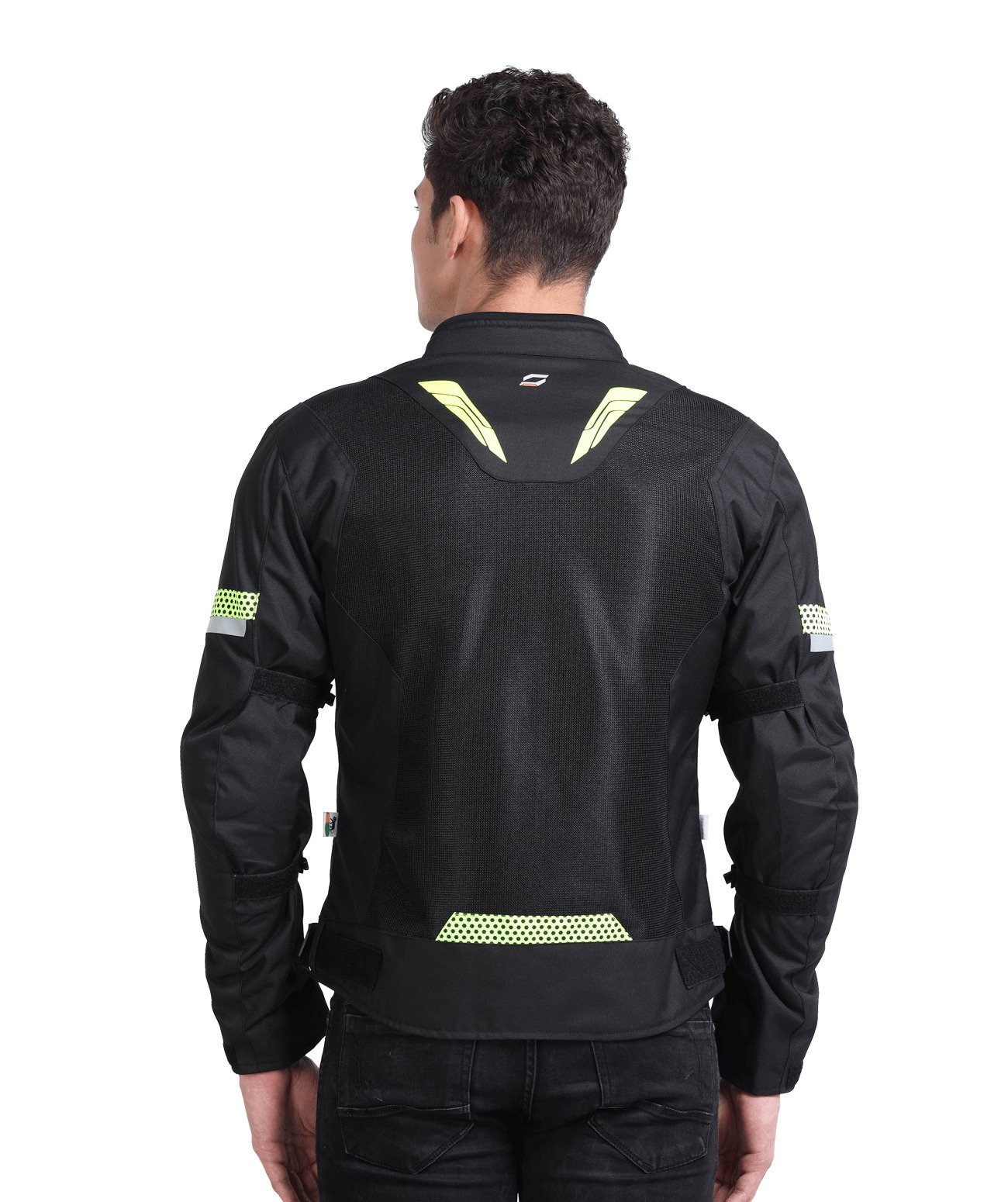 Durable 700 Denier polyester and mesh chassis, with Safetech CE Level 2 armour in the shoulders, elbows and the back, while the chest is now protected by Powertector CE level 2 armour.