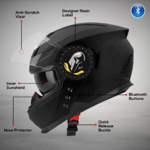 Experience the future of helmet technology with the 5.2 Bluetooth Smart Helmet—designed for riders who value safety, connectivity, and convenience. This ISI-certified full-face helmet features a high-impact-resistant thermoplastic shell, ensuring superior protection on every ride.
