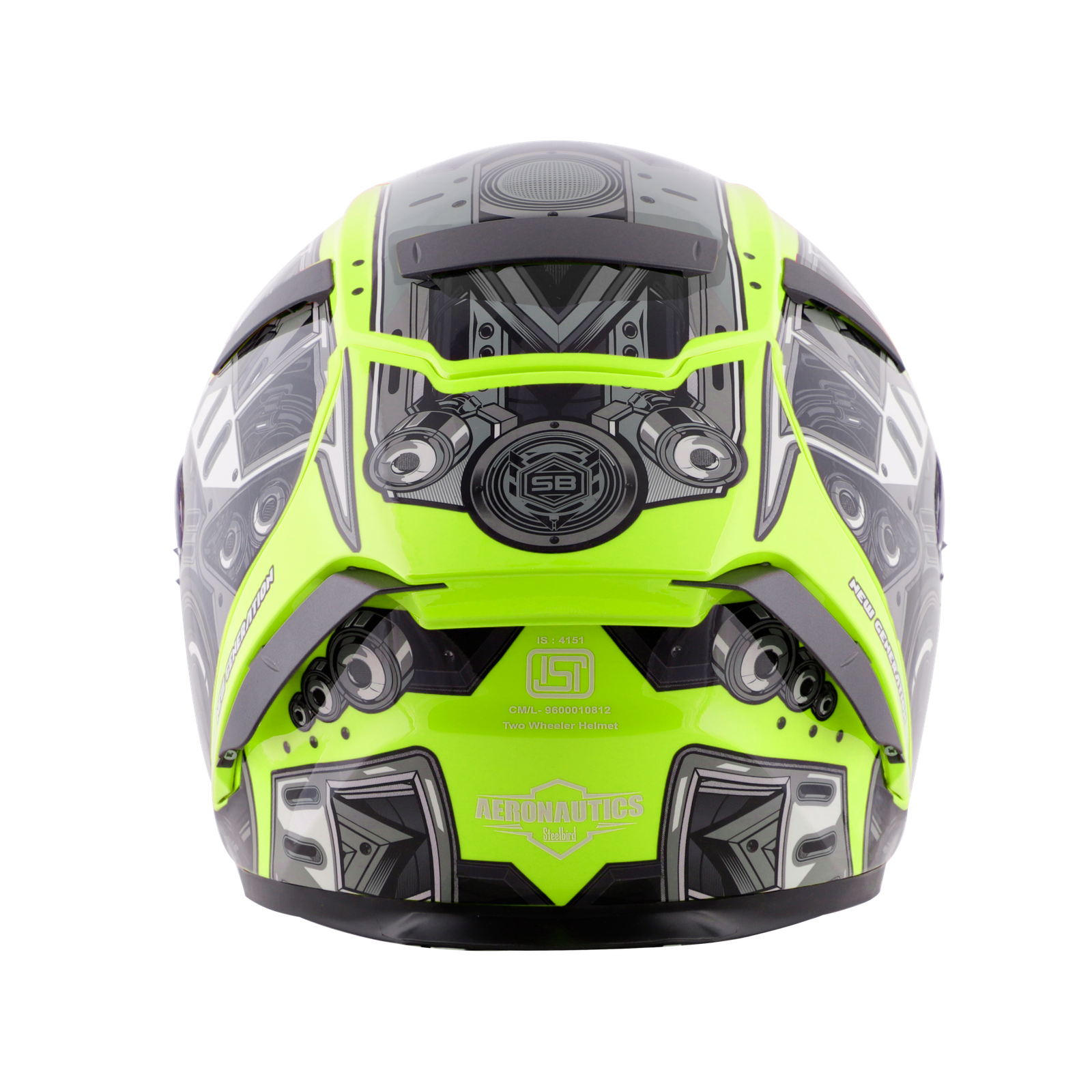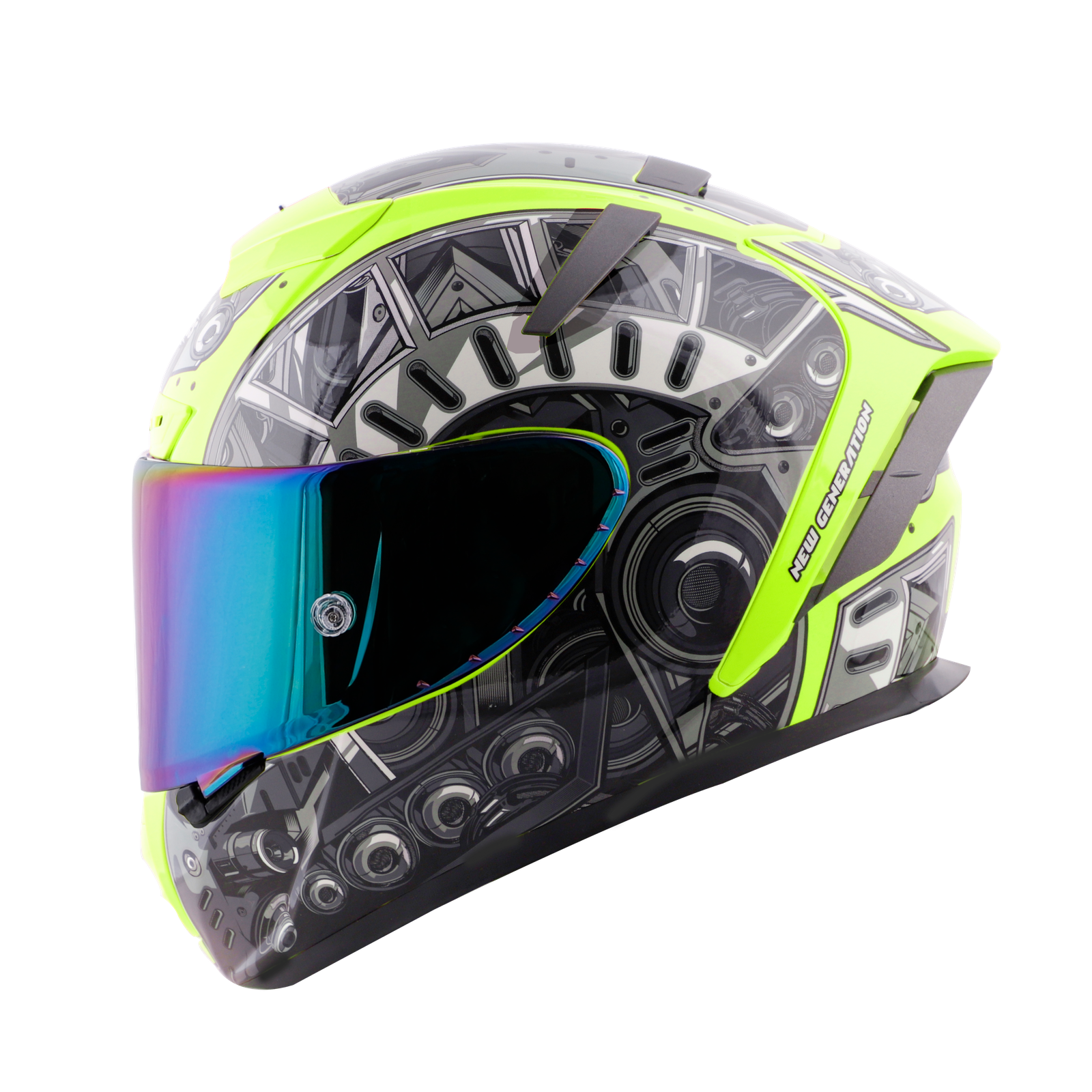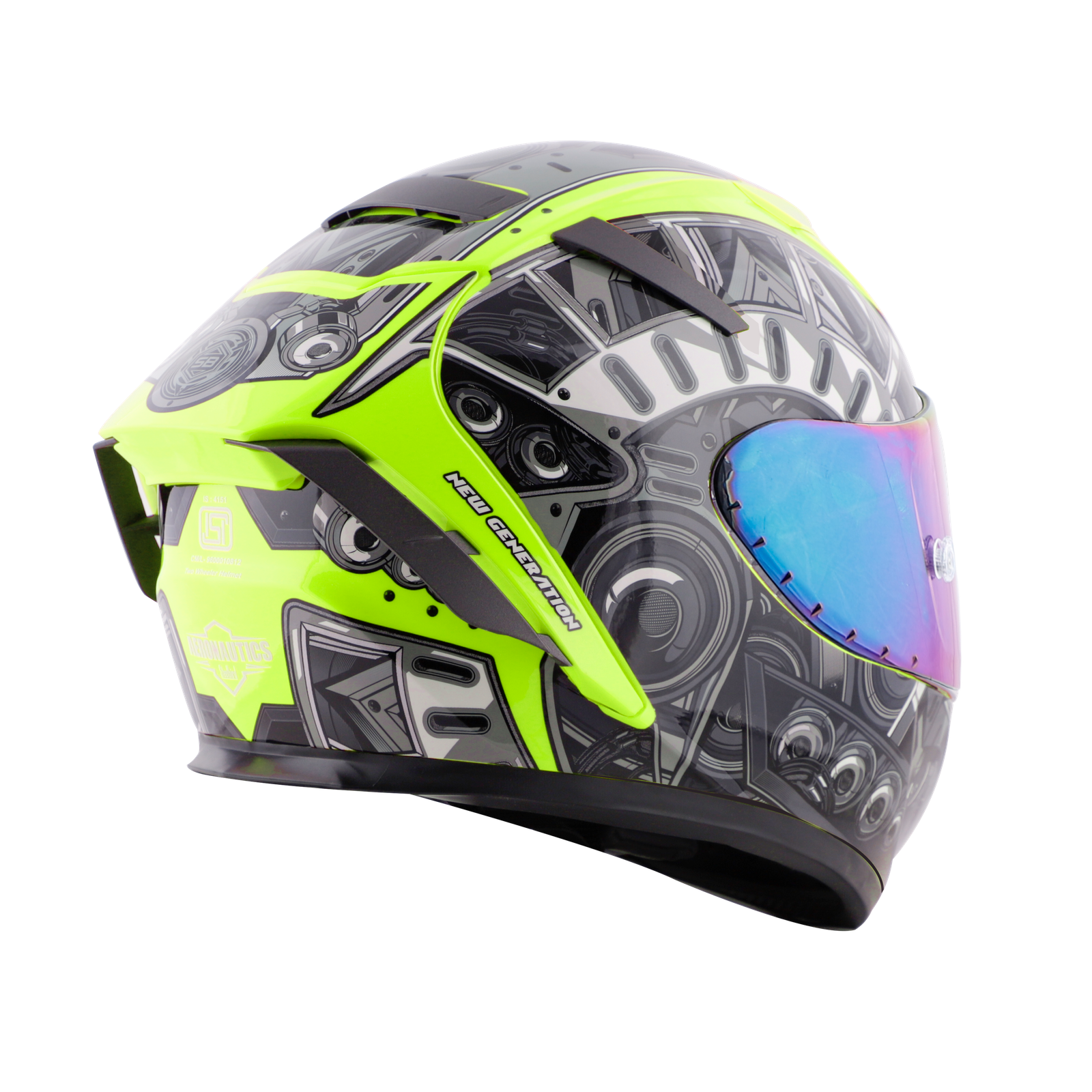 STEELBIRD SA-2 TERMINATOR 2.0 Glossy Fluo Neon Grey Fitted Helmet – Superior Safety & Style with Anti-Fog Shield Holder