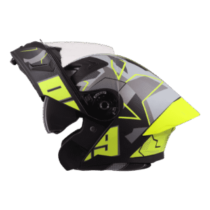 Comes with easy flip up mechanism. Quick release chin guard flipup mechanism with one button.