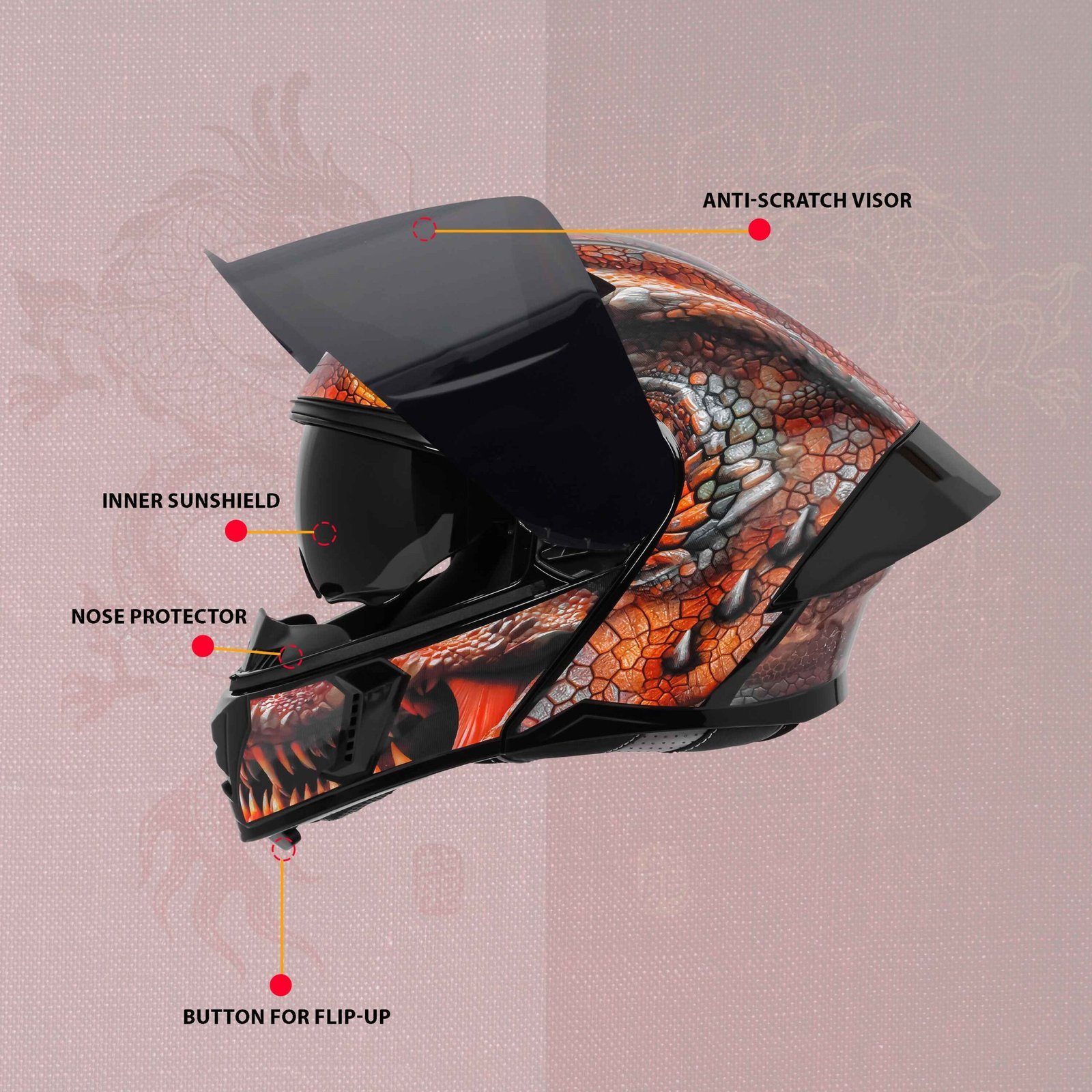 - Comes with easy flip up mechanism. Quick release chin guard flipup mechanism with one button.