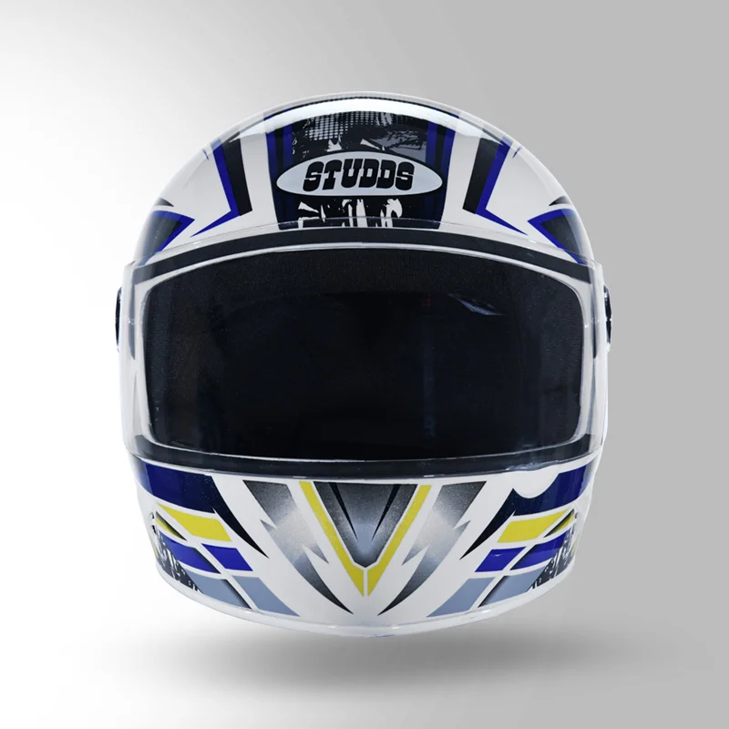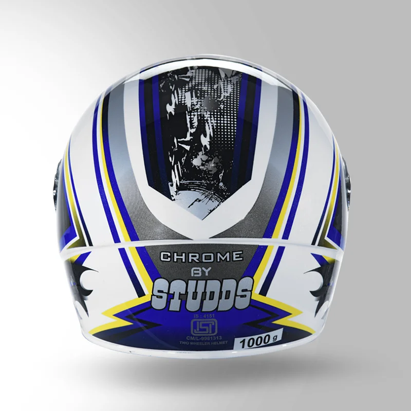 STUDDS Chrome D1 Decor Helmet White & Blue – Stylish Full-Face Protection for Daily Rides