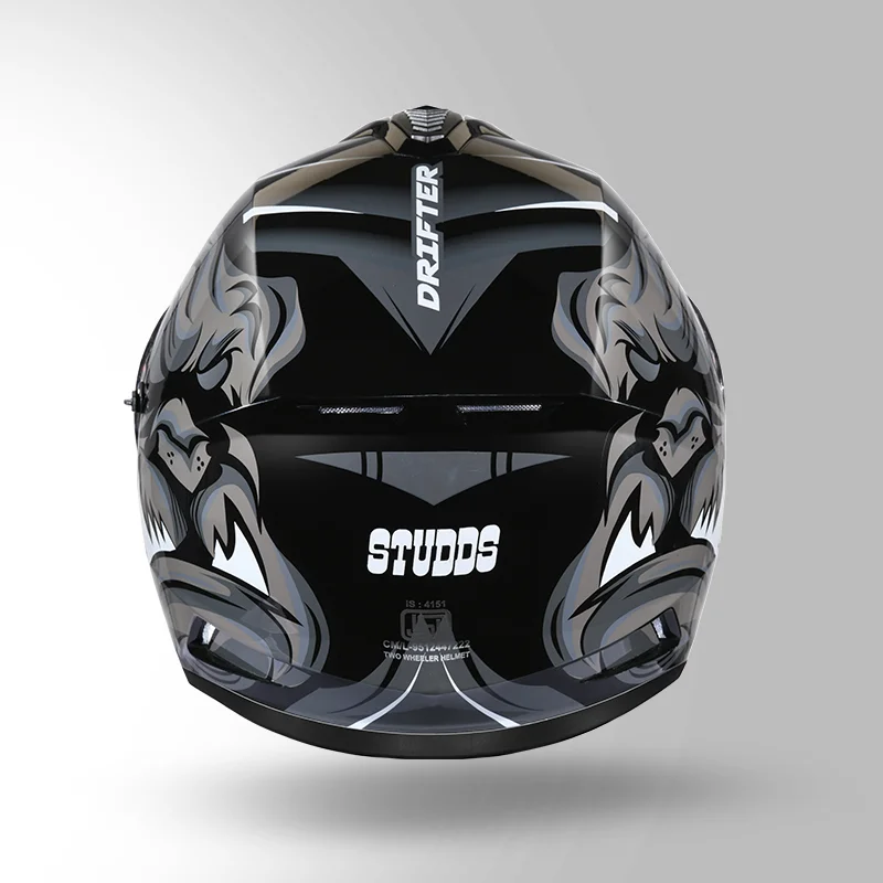 The STUDDS Drifter D1 Decor N4 Black Grey is a full-face helmet featuring a high-impact shell, dual visor system, effective ventilation, and a comfortable, removable liner for safe and stylish everyday riding.