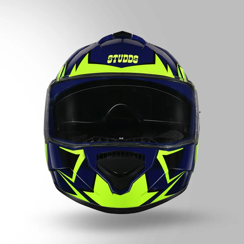 The STUDDS Drifter D1 Decor N5 Yellow Blue is a full-face helmet featuring a high-impact shell, regulated EPS, dynamic ventilation, and a convenient dual visor system for daily and touring rides.