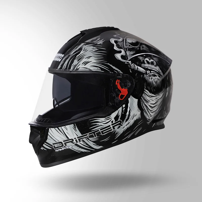 Drifter D3 Rampage Decor is a full-face helmet with a high-impact outer shell and UV resistant paint along with product features like an aerodynamic design, regulated density EPS, dynamic ventilation system with chin and top air vents and hot air exhausts, hypoallergenic and replaceable liner, removable and replaceable lower trim, silicone-coated dual visor with quick release chin strap. It also comes with a special dual visor lever. Drifter D3 Decor-Rampage series comes in various sizes and graphics options.To make it look more aggressive, each helmet comes with a matching spoiler. Install and flaunt it. Rule the road with Drifter D3-Rampage series of helmets.