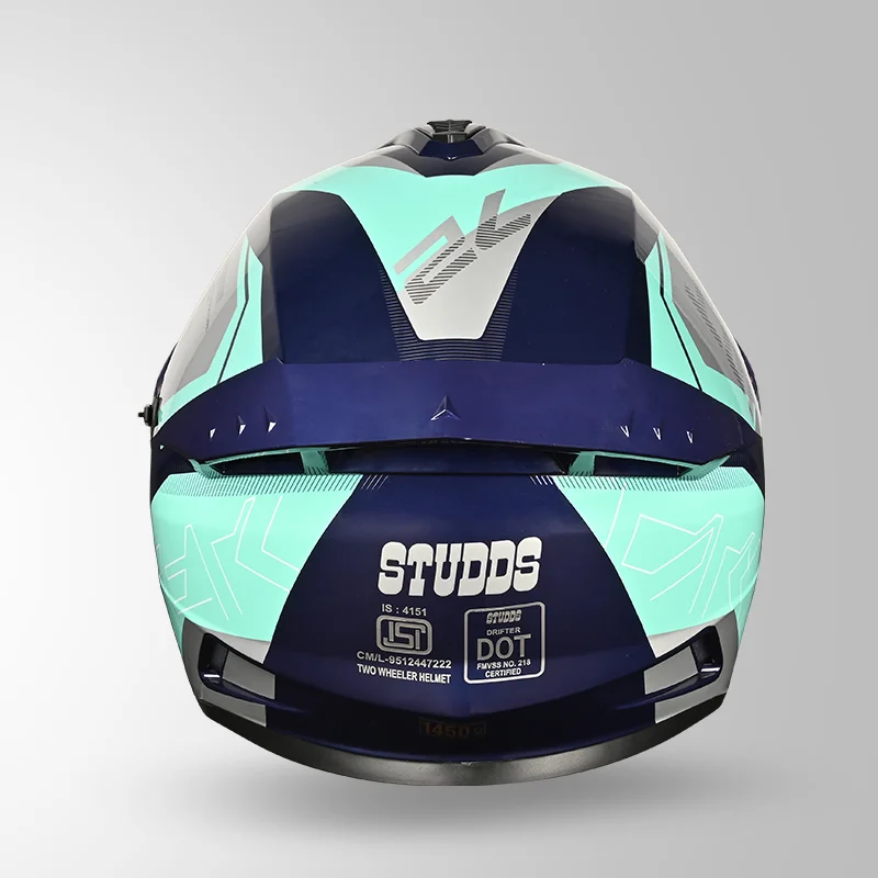 The STUDDS Drifter D6 Rebellion Helmet blends style and durability for safety-focused riders. With a high-impact ABS shell, this ISI & DOT certified helmet ensures top protection. Its scratch-resistant quick-release visor offers clear visibility, while the efficient ventilation system keeps you cool. Featuring high-density EPS for added safety, it also includes a free spoiler and a silicone-coated dual visor.