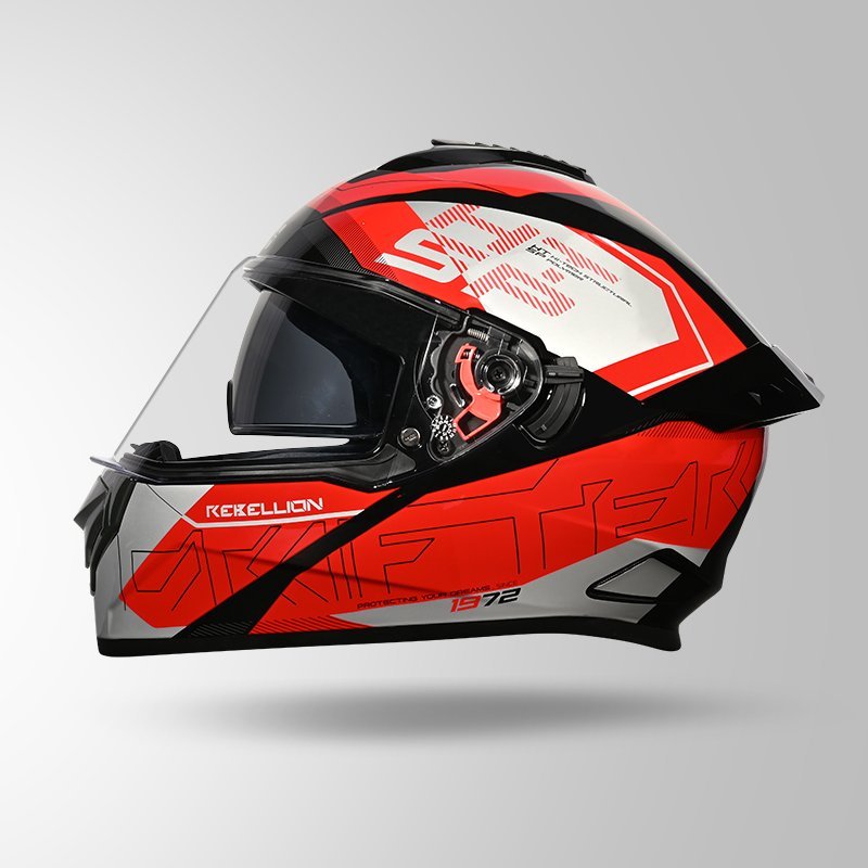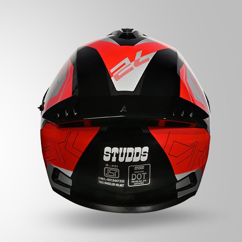 The STUDDS Drifter D6 Rebellion Helmet blends style and durability for safety-focused riders. With a high-impact ABS shell, this ISI & DOT certified helmet ensures top protection. Its scratch-resistant quick-release visor offers clear visibility, while the efficient ventilation system keeps you cool. Featuring high-density EPS for added safety, it also includes a free spoiler and a silicone-coated dual visor.