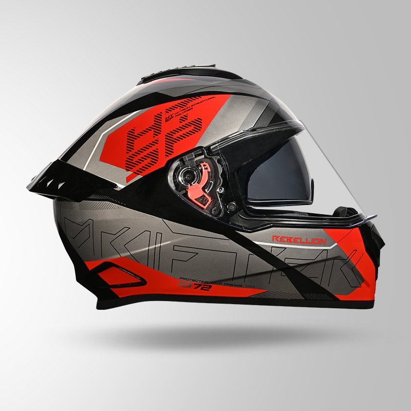 The STUDDS Drifter D6 Rebellion Helmet blends style and durability for safety-focused riders. With a high-impact ABS shell, this ISI & DOT certified helmet ensures top protection. Its scratch-resistant quick-release visor offers clear visibility, while the efficient ventilation system keeps you cool. Featuring high-density EPS for added safety, it also includes a free spoiler and a silicone-coated dual visor.