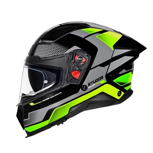STUDDS Helios D1 Asphalt Decor Helmet Black Green – Stylish Comfort with Certified Protection