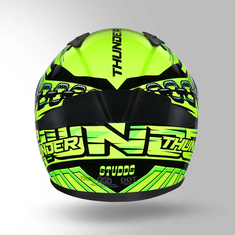 STUDDS THUNDER COMMUNICATION READY D5 DECOR HELMET BLACK/GREEN & YELLOW WITH BATTERY