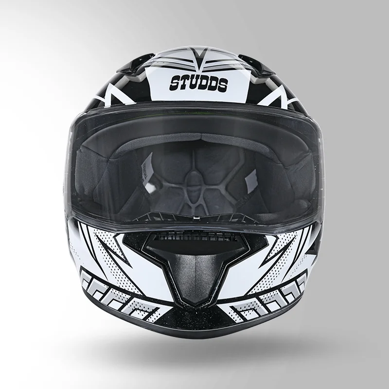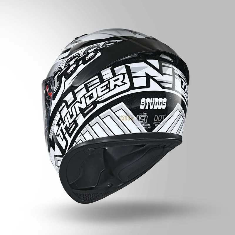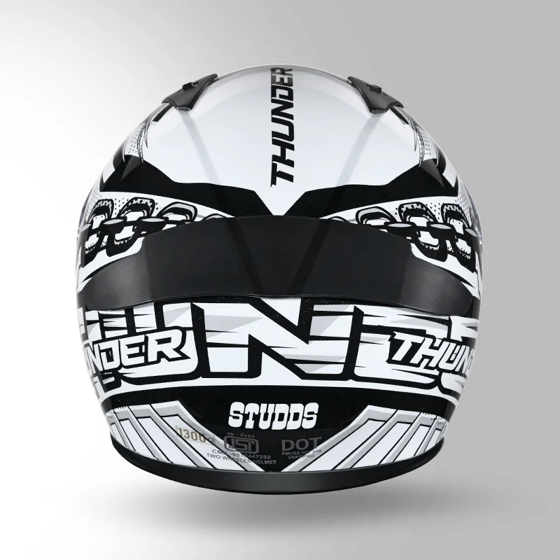 STUDDS Thunder Communication Ready D5 Decor Helmet Matt Black & White with Battery – Smart Riding Safety