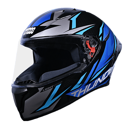 Thunder D1 Lightvolt is a full-face helmet featuring a spoiler for enhanced aerodynamics. Its high-impact outer shell and regulated density EPS ensure top-notch protection. The dynamic ventilation system keeps you cool, while the hypoallergenic, replaceable liner guarantees comfort and hygiene. With a quick-release visor and chin strap for convenience, this helmet prioritizes safety and ease of use.