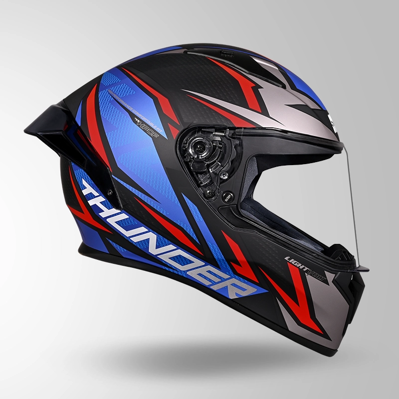 Ride with Thunder D1 Helmet – Dual-certified, stylish matte finish, airflow system, and impact protection.